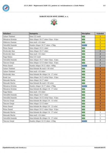 september 1992- vznik samostatného Karate klubu Nové Zámky